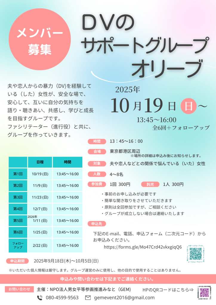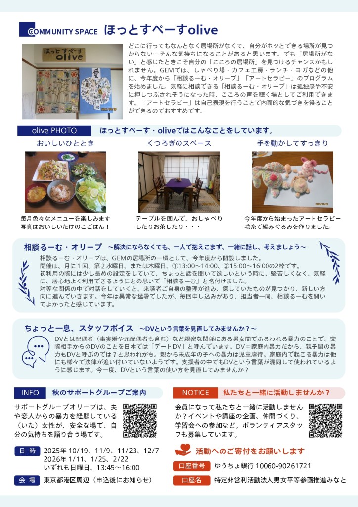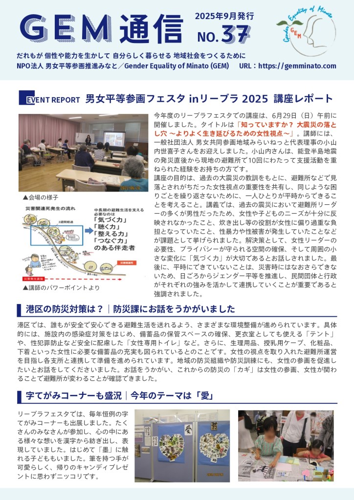 NPO法人男女平等参画推進みなと(GEM)では、女性のためのさまざまな支援をおこなっています。