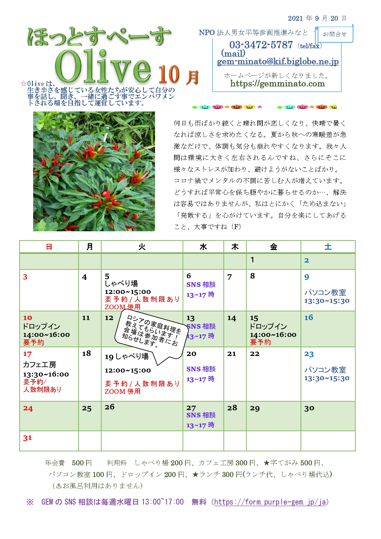 10月のオリーブ予定表