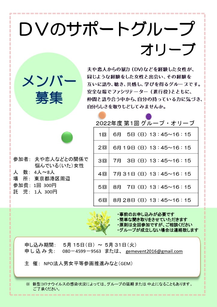 ◎申込先◎ NPO法人男女平等参画推進みなと(GEM)