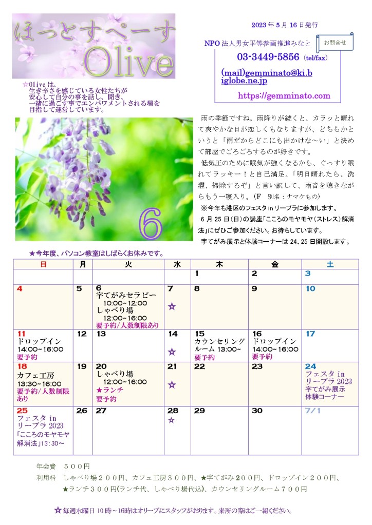 6月のオリーブ予定表