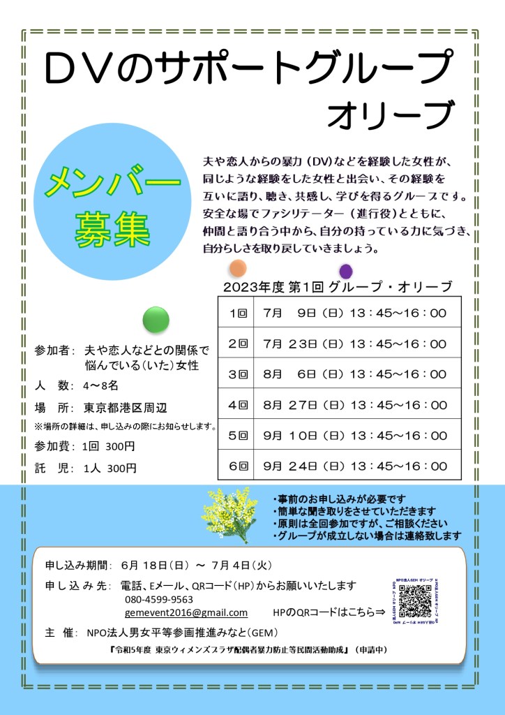 ◎申込先◎ NPO法人男女平等参画推進みなと(GEM)