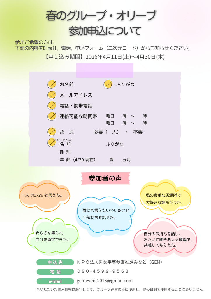 ◎申込先◎ NPO法人男女平等参画推進みなと(GEM)