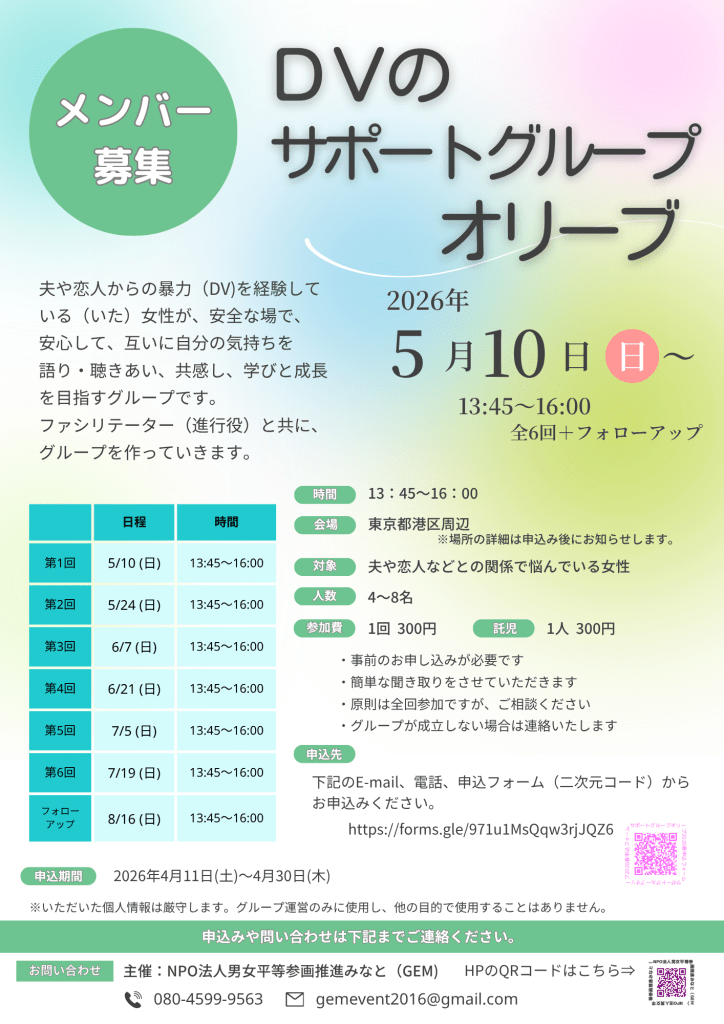主 催: NPO法人男女平等参画推進みなと(GEM)