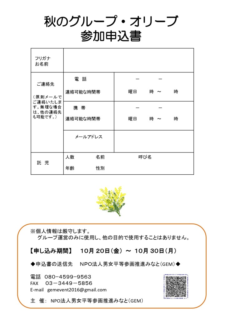◎申込先◎ NPO法人男女平等参画推進みなと(GEM)