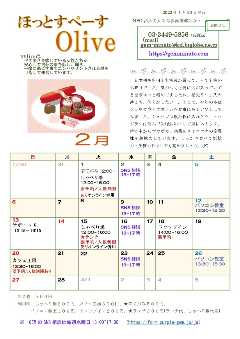 2021年度 第2回 グループ・オリーブ(全6回)※日程変更しました。