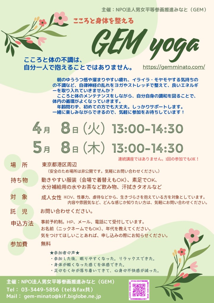 主催:NPO法人男女平等参画推進みなと(GEM) https://gemminato.com/